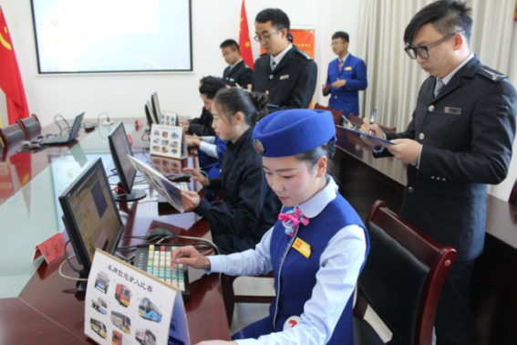 12月22日,文明服务展示、业务知识答题、车辆信息录入、点钞验钞、监控软件操作、安全技能、演讲、团队礼仪展示等六个项目决赛逐项展开。各项比赛精彩纷呈,参赛选手都展现出了良好的精神面貌与竞技状态,文明展示中的规范优雅、业务知识竞答中的熟练准确、点钞验钞中的娴熟手法、演讲中的个性飞扬以及团体礼仪展示中的青春活力都给大家留下了深刻印象。