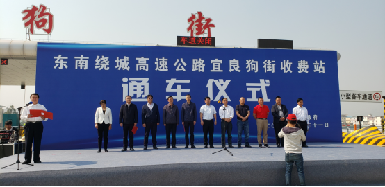 2019年3月31日上午11时,昆明绕城高速公路东南段狗街收费站顺利通车,宜良县委、县政府领导,公路股份公司及下属东南绕公司、宜石公司主要领导参加了通车仪式。狗街收费站是狗街镇上下高速公路的首座收费站,既是东南绕城高速公路的重要节点,也是宜石高速公路的建设起点。收费站的顺利通车,实现了东南绕城高速、宜石高速路网的顺利搭接,为早日实现东南绕高速全线建成通车奠定了基础,也是宜石项目建设的重要里程碑,对促进周边群众便捷出行具有重要意义。