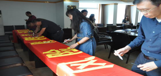 图为2019年6月5日职工踊跃参加“安康杯”、“安全月”启动仪式签名活动
