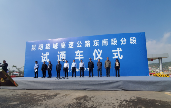 2019年9月30日上午10时30分,东南绕高速自起点小龙高速公路金钟山连接线至杨林隧道进口路段、宜良北羊街至宜良小渡口路段、澄江龙街至止点晋宁余家海路段正式实现分段试通车运营。