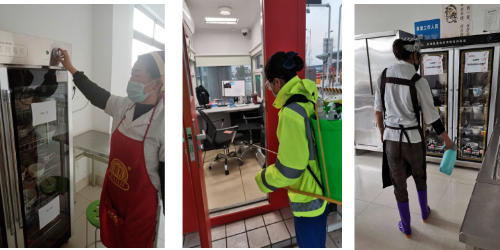 元朔公司严格落实防疫消杀措施,在南连接线高速公路各收费站、管理用房、食堂、卫生间及职工乘坐的车辆等公共场所,均配备消毒药水及喷壶,每日不少于3次的消毒。对食堂、票据室、收费亭等重点部位采用紫外线杀菌灯进行灭菌消毒。在各管理用房进出口设置消毒地垫,对进出人员鞋子进行消毒,确保职工生活环境、办公环境消毒全覆盖、无死角。同时,各管理用房均设置设置废弃口罩、手套回收箱,做好废弃口罩、手套的统一回收处理。