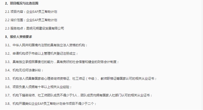 昆明元朔建设发展有限公司2020年企业EAP员工帮助计划市场询价公告