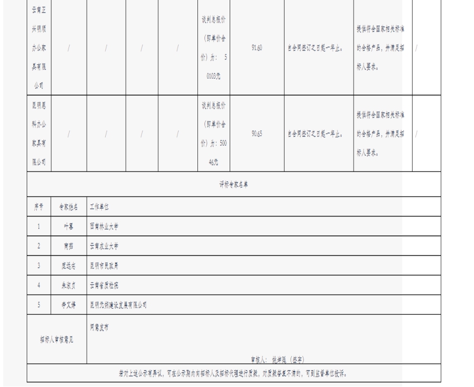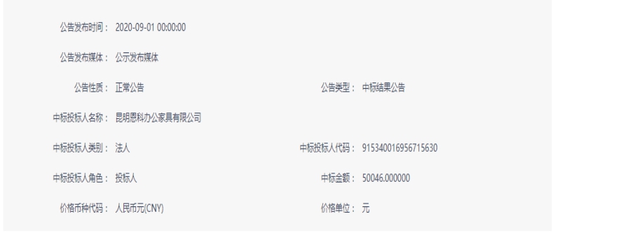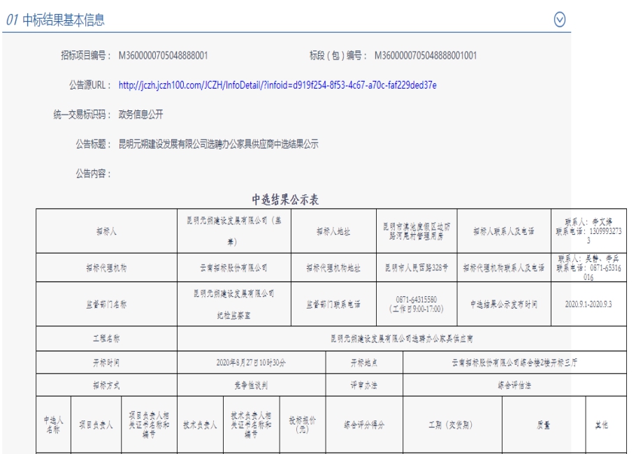 昆明元朔建设发展有限公司选聘办公家具供应商中标结果公示