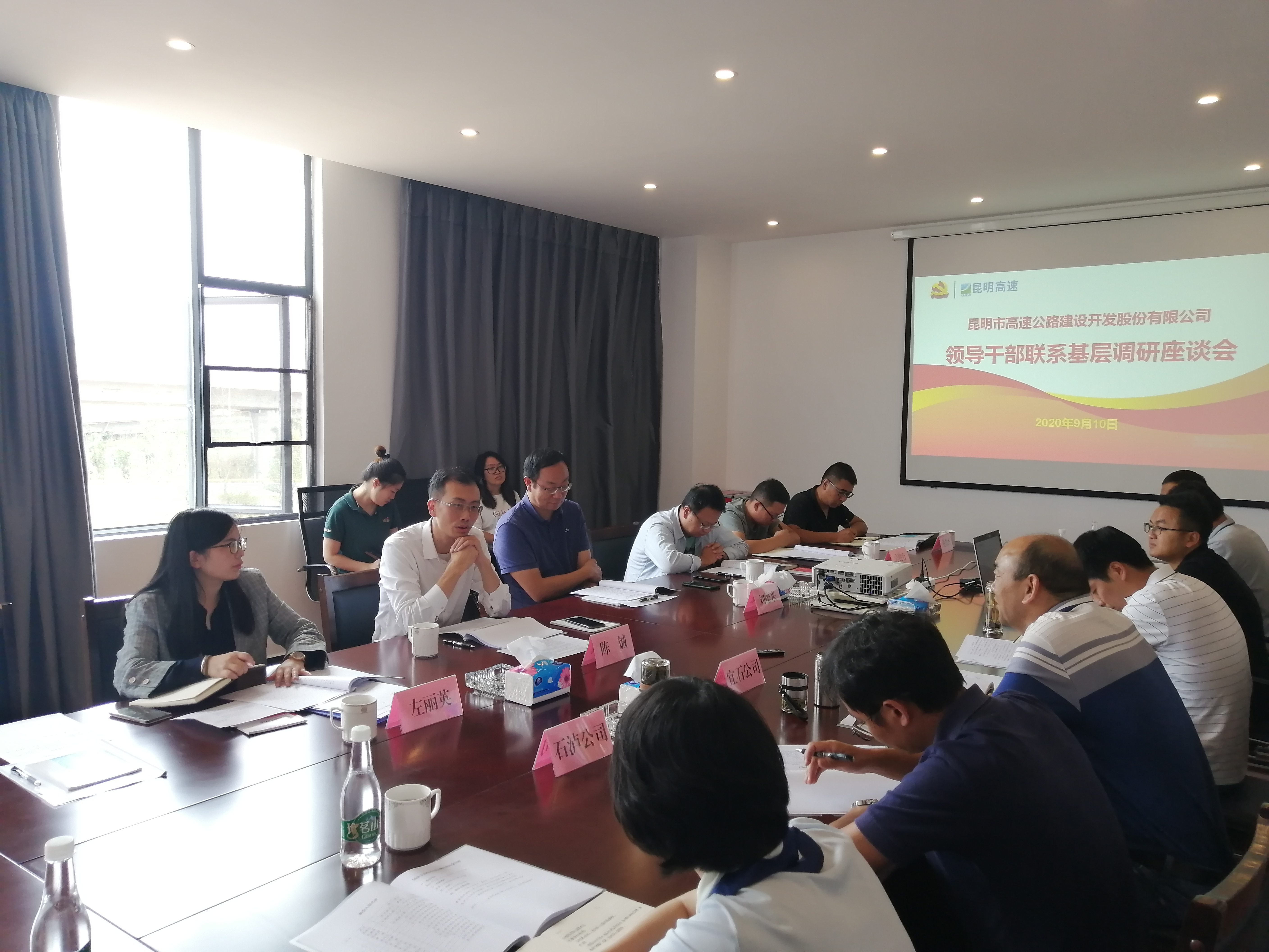 9月10日下午,昆明市高速公路党委委员、总经理陈铖,党委委员、副总经理刘德来带队到宜石、石泸公司召开领导干部联系基层调研座谈会,宜石、石泸公司中层及以上领导、职工代表参加座谈。