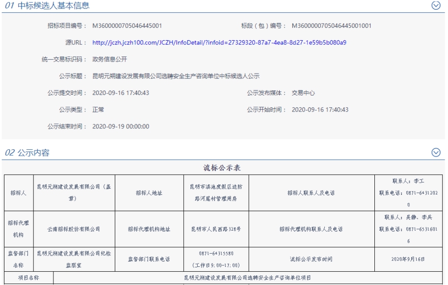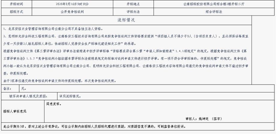 昆明元朔建设发展有限公司选聘安全生产咨询单位流标公示