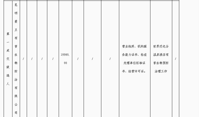 昆明元朔建设发展有限公司有害生物防治评标结果公示