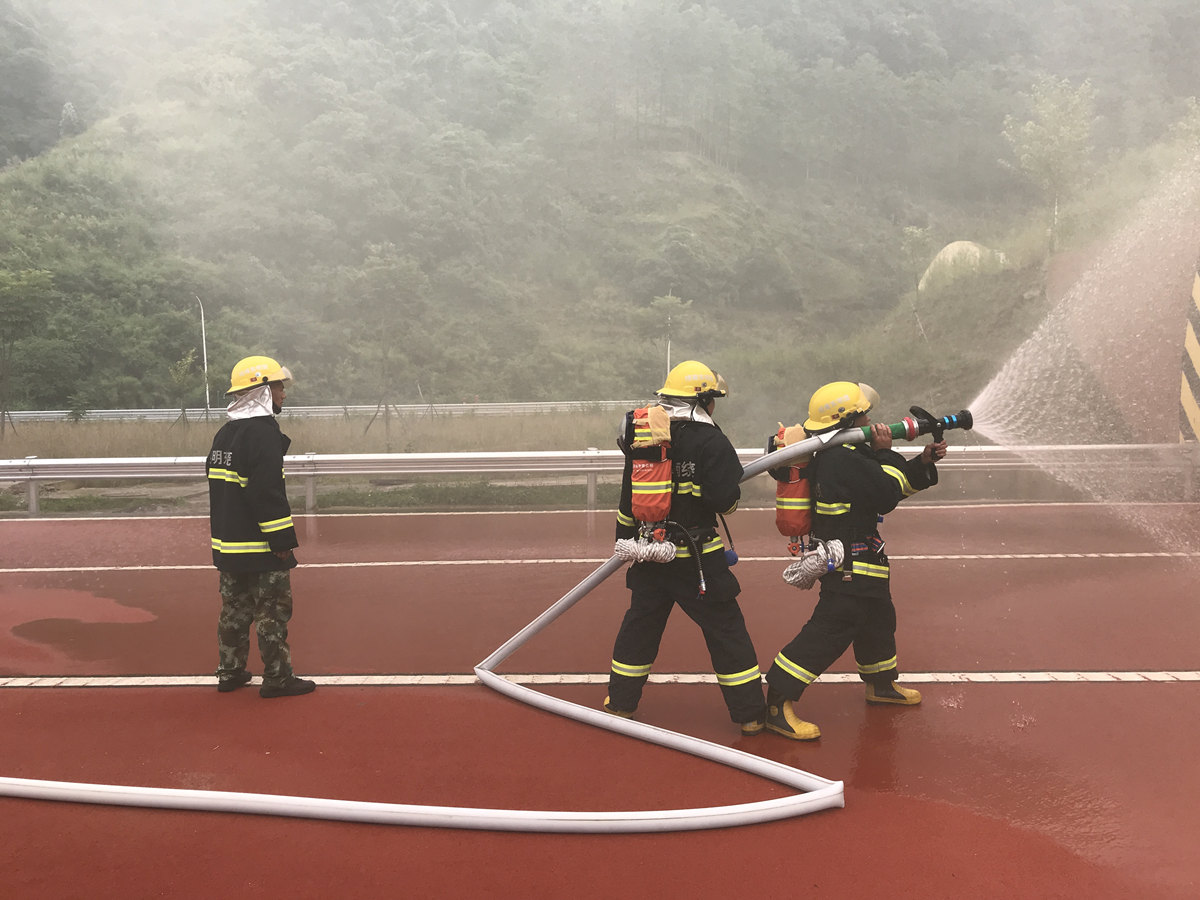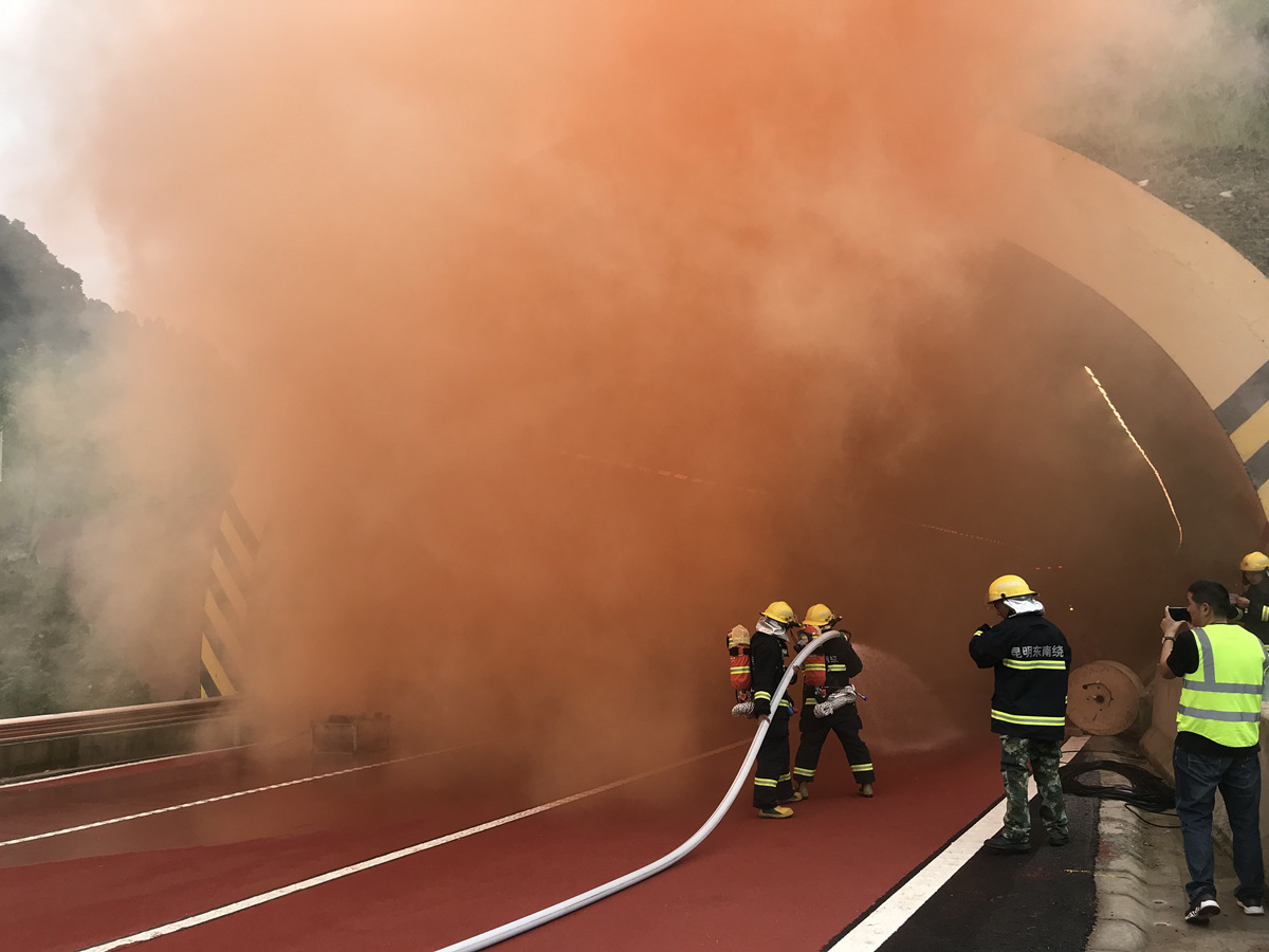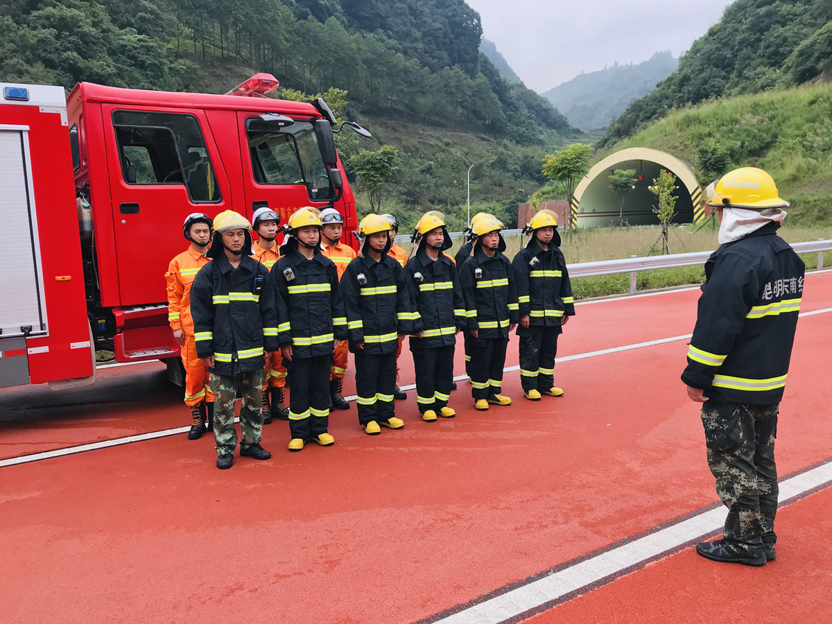 为保障杨林特长隧道左幅于9月30日顺利通车及后续运营安全,东南绕公司于9月29日上午11:30组织专职消防救援队及相关部门开展杨林特长隧道交通事故(火灾、人员被困情景)应急救援演练,演练邀请了交警、路政、及养护等单位。