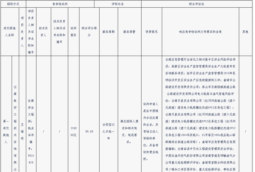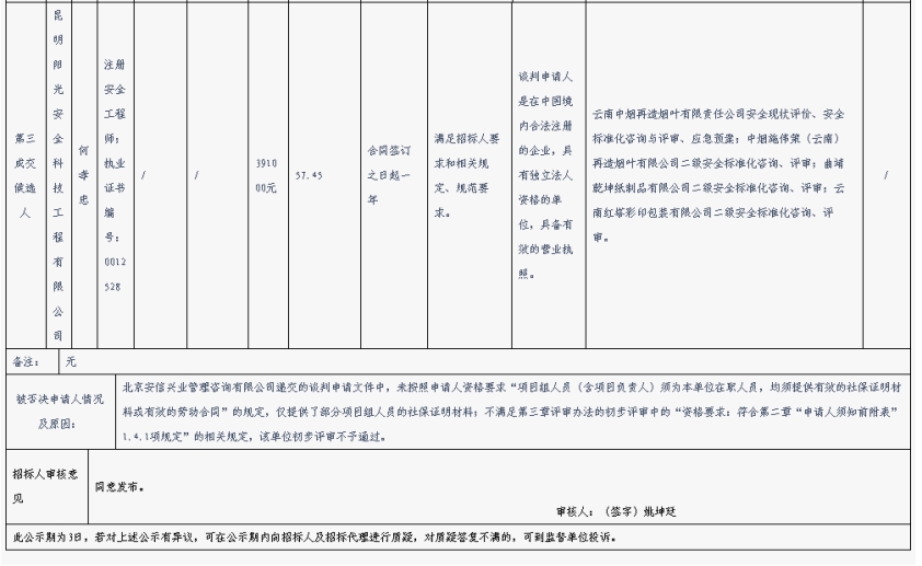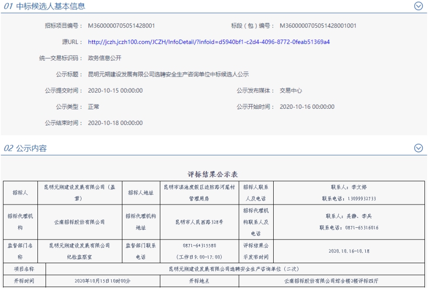昆明元朔建设发展有限公司选聘安全生产咨询单位评标结果公示