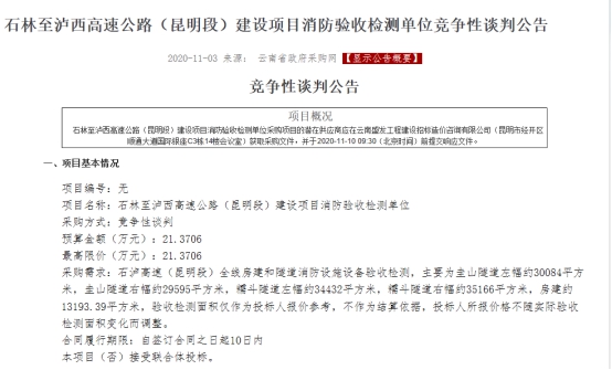 石林至泸西高速公路(昆明段)建设项目消防验收检测单位竞争性谈判公告