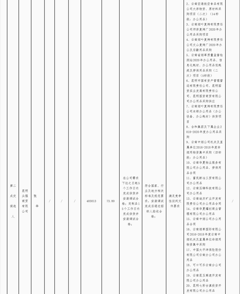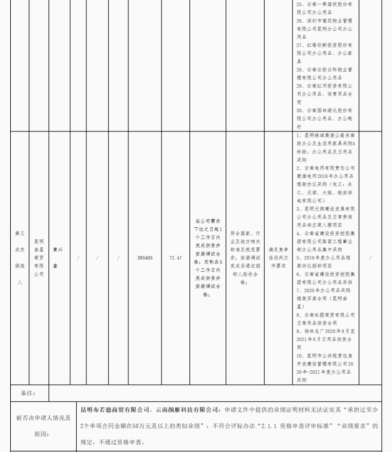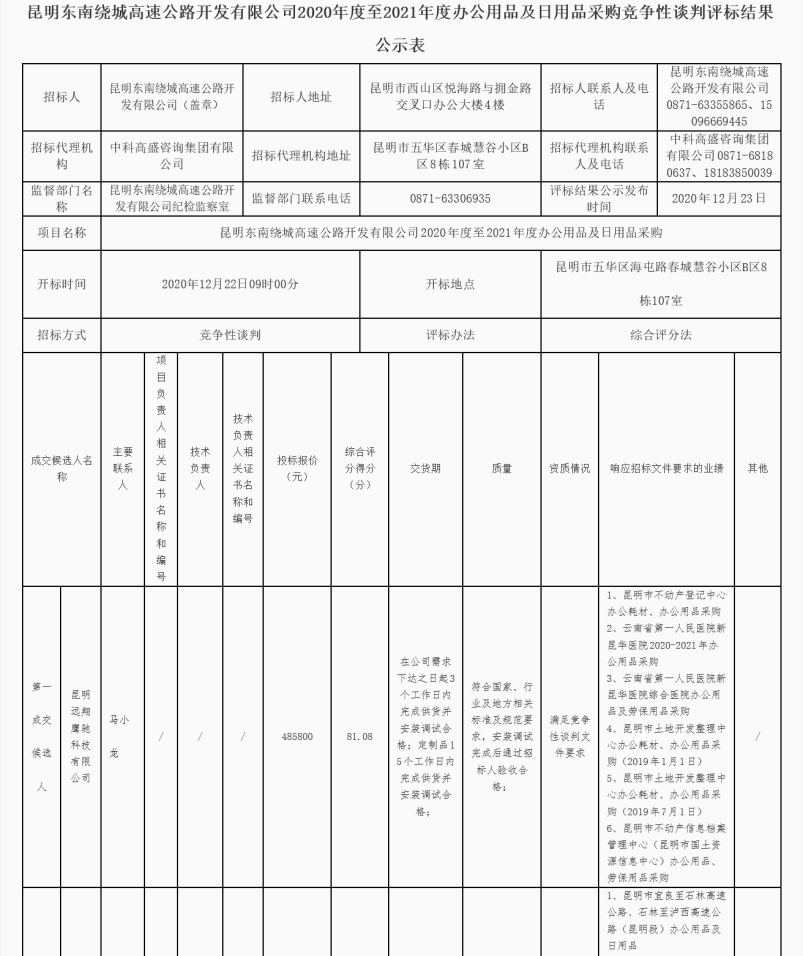 昆明东南绕城高速公路开发有限公司2020年度至2021年度办公用品及日用品采购竞争性谈判结果公示
