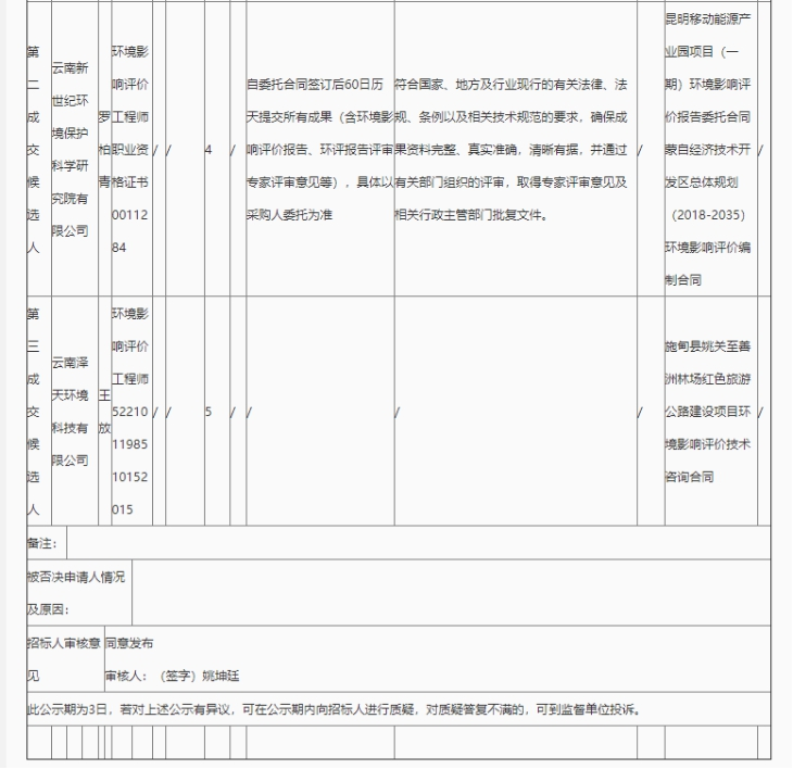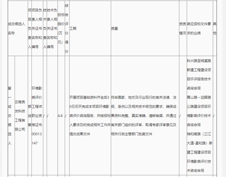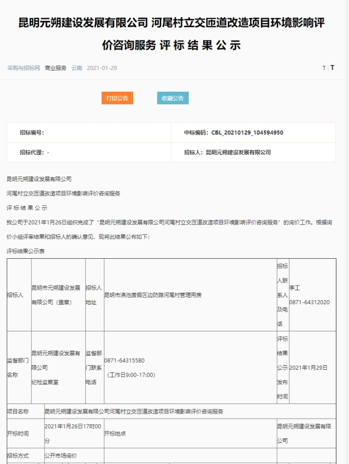 昆明元朔建设发展有限公司河尾村立交匝道改造项目环境影响评价咨询服务评标结果公示