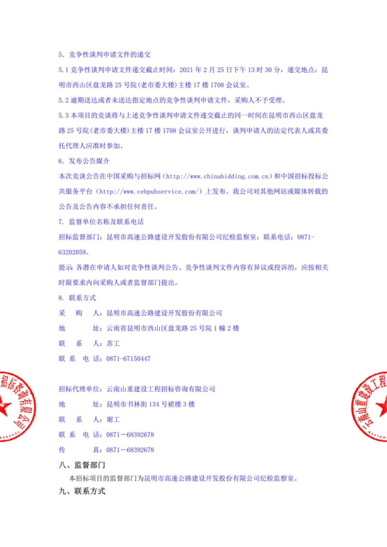 昆明东南绕城高速公路开发有限公司选聘2021-2022年招标代理机构竞争性谈判公告