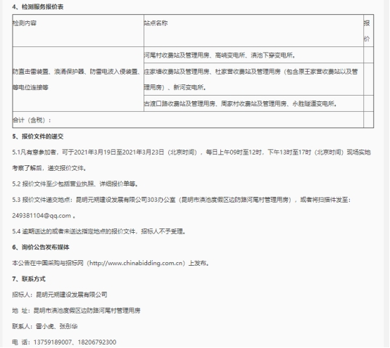 昆明元朔建设发展有限公司2021年防雷装置安全检测服务(二次)市场询价公告