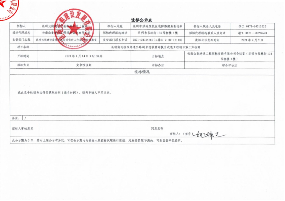 昆明南连接线高速公路周家村收费站提升改造工程项目第三方检测流标公示
