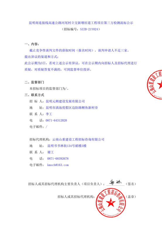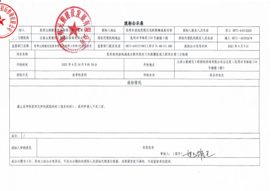 昆明南连接线高速公路河尾村立交新增匝道工程项目第三方检测流标公示