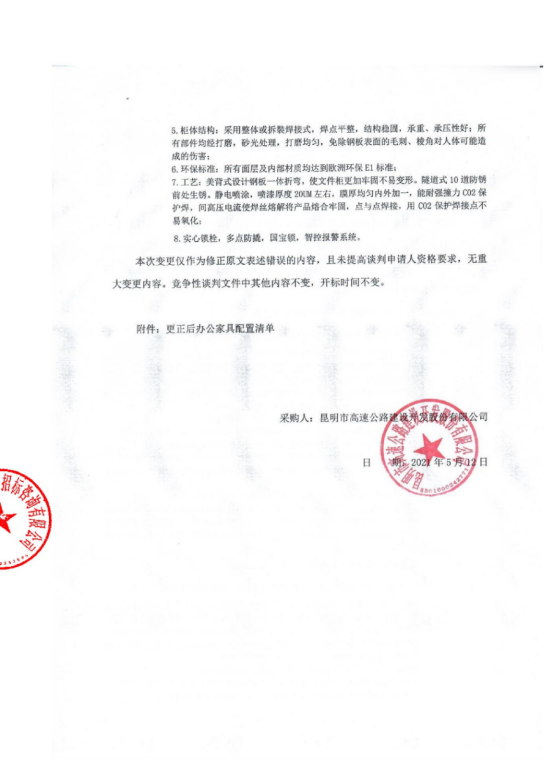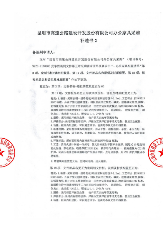昆明市高速公路建设开发股份有限公司办公家具采购补遗书2