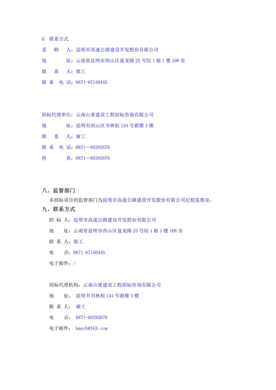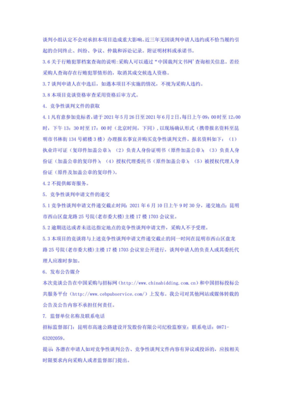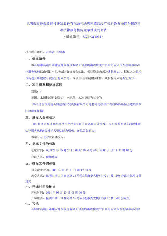 昆明市高速公路建设开发股份有限公司选聘南连接线广告纠纷诉讼保全超额事项法律服务机构竞争性谈判公告