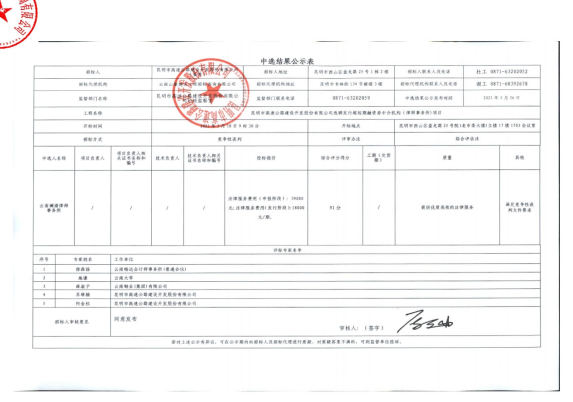 昆明市高速公路建设开发股份有限公司选聘发行超短期融资券中介机构(律师事务所)项目中标结果公示