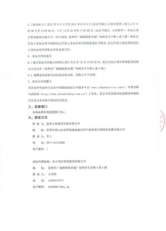 昆明元朔建设发展有限公司选聘昆明南连接线高速公路罗衙立交项目用地报批代理服务单位项目竞争性谈判公告