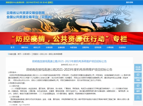 昆明南连接线高速公路2021-2023年度机电系统维护项目招标公告