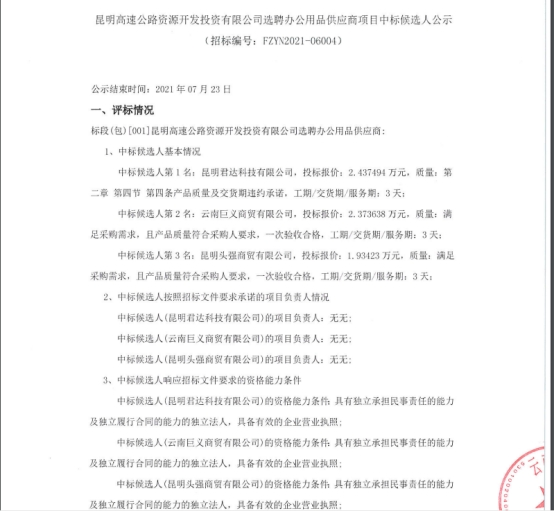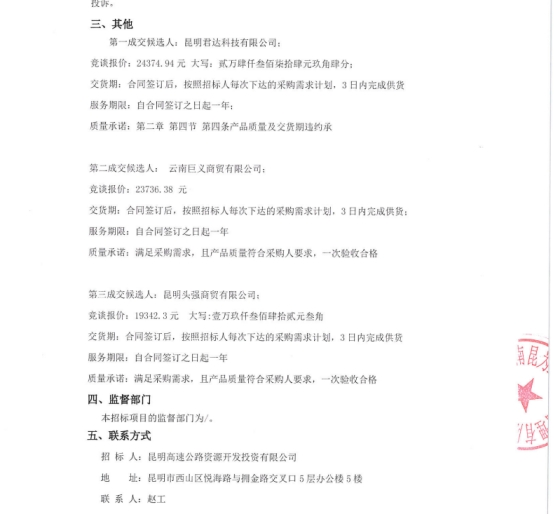昆明资源开发公司选聘办公用品供应商竞争性谈判评审结果公示