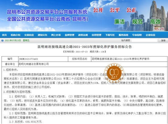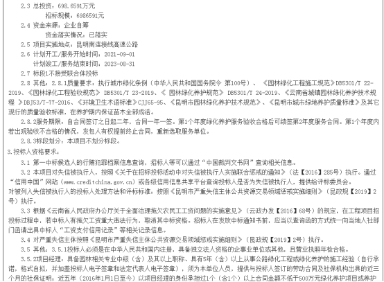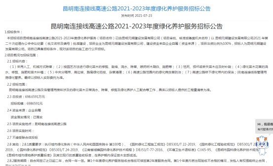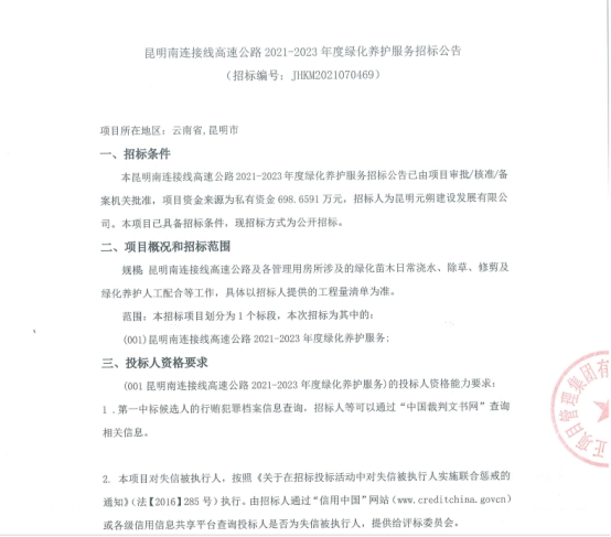 昆明南连接线高速公路2021-2023年度绿化养护服务招标公告
