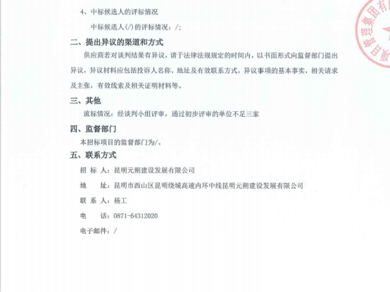 昆明元朔建设发展有限公司选聘昆明南连接线高速公路配电室及10kV线路2021-2022年度运维单位项目流标结果公示