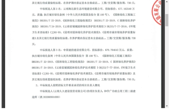 昆明南连接线高速公路2021-2023年度绿化养护服务中标候选人公示