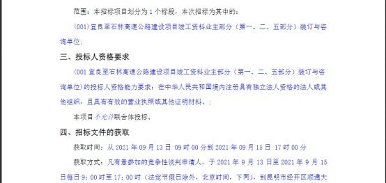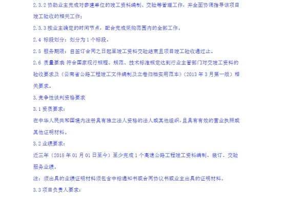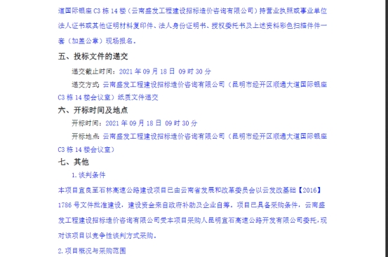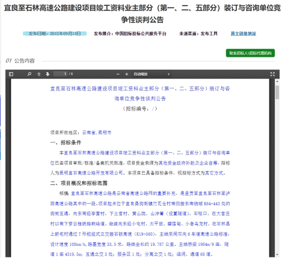 关于宜良至石林高速公路建设项目竣工资料业主部分(第一、二、五部分)装订与咨询单位竞争性谈判公告