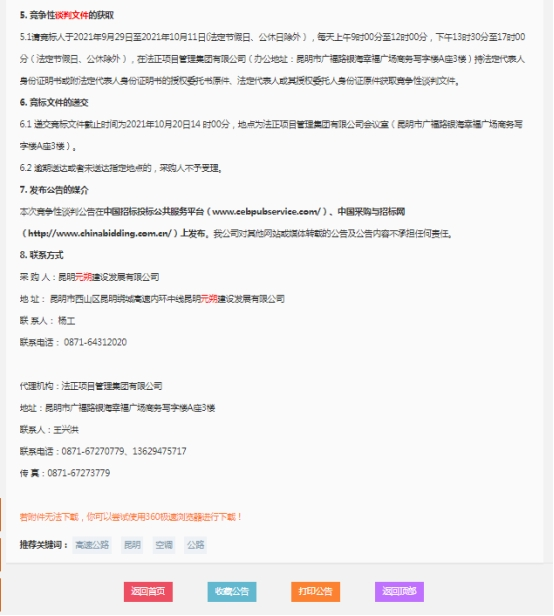 昆明元朔建设发展有限公司关于选聘昆明南连接线高速公路空调清洗保养单位(二次)竞争性谈判公告