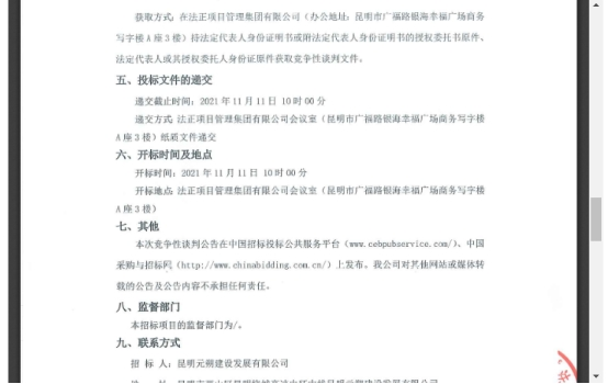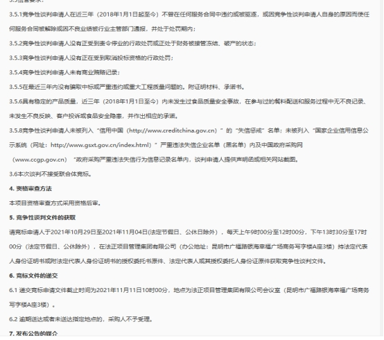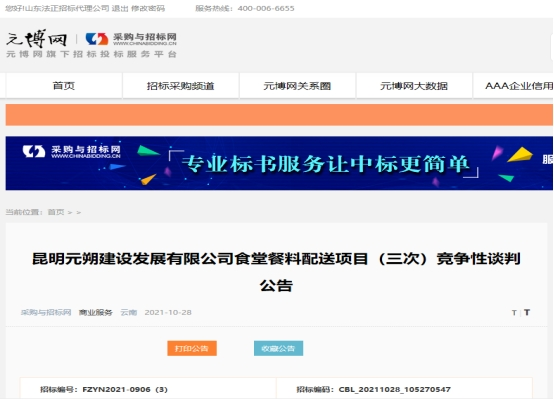 昆明元朔建设发展有限公司食堂餐料配送项目(三次)竞争性谈判公告