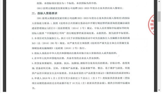 昆明元朔建设发展有限公司选聘2021-2023年度办公家具供应商入围项目竞争性谈判公告
