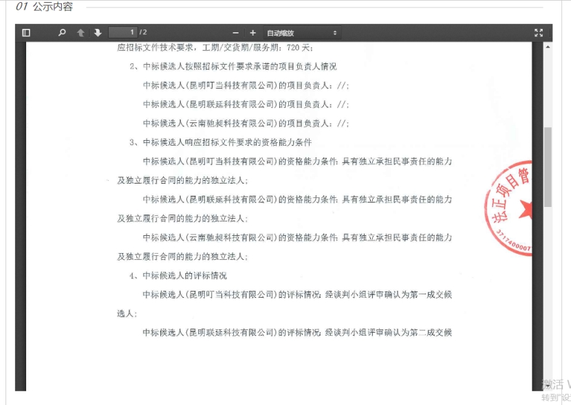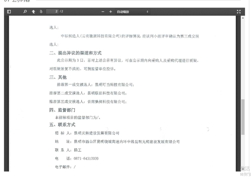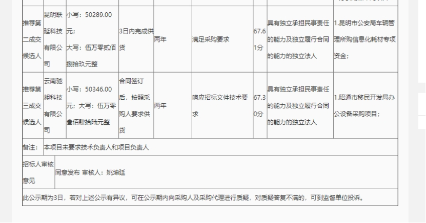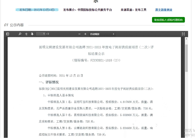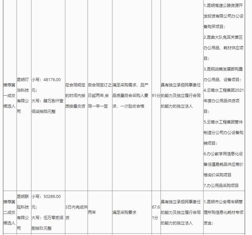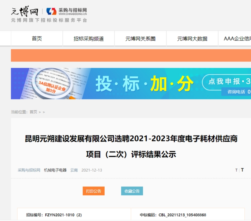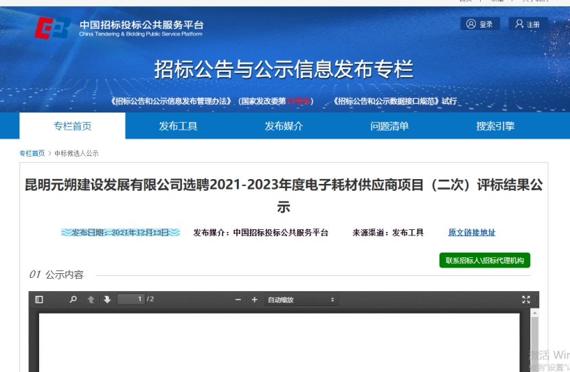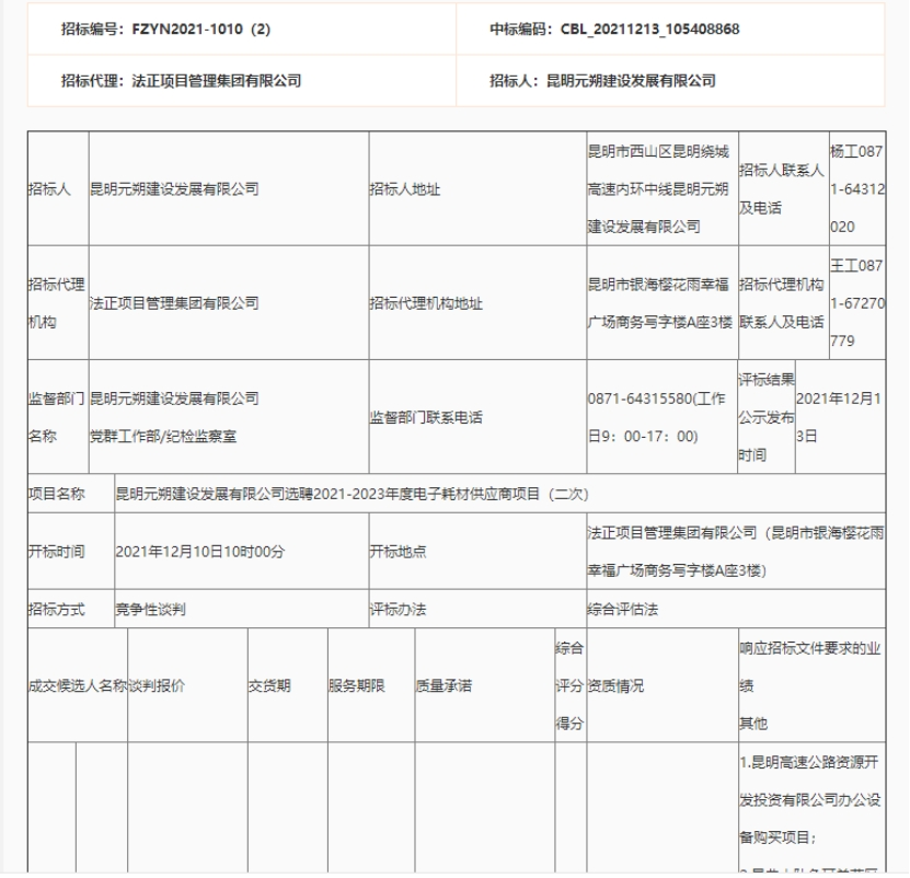 昆明元朔建设发展有限公司选聘电子耗材供应商竞争性谈判(二次)评标结果公示发布信息