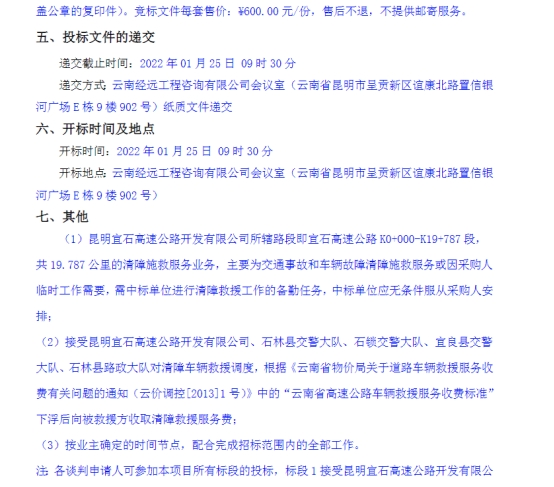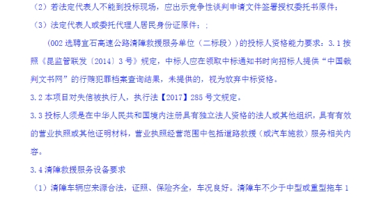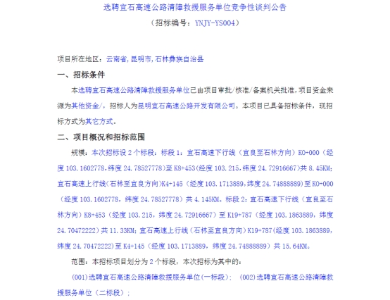选聘宜石高速公路清障救援服务单位竞争性谈判公告