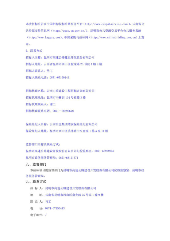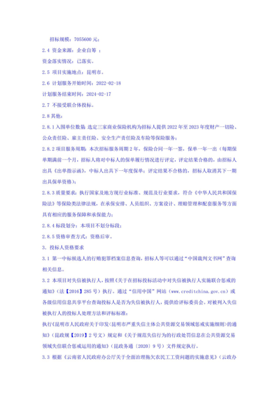 昆明市高速公路建设开发股份有限公司(含全资或控股子公司)2022年—2023年度保险服务项目招标公告