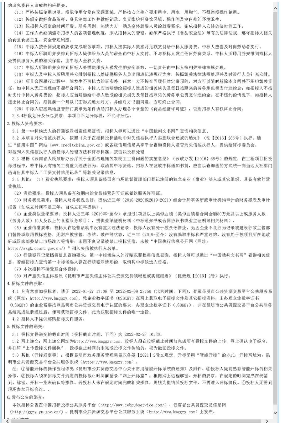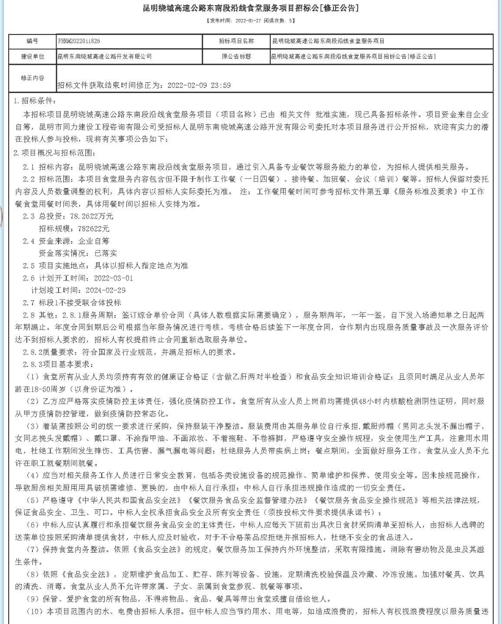 昆明绕城高速公路东南段沿线食堂服务项目招标公告