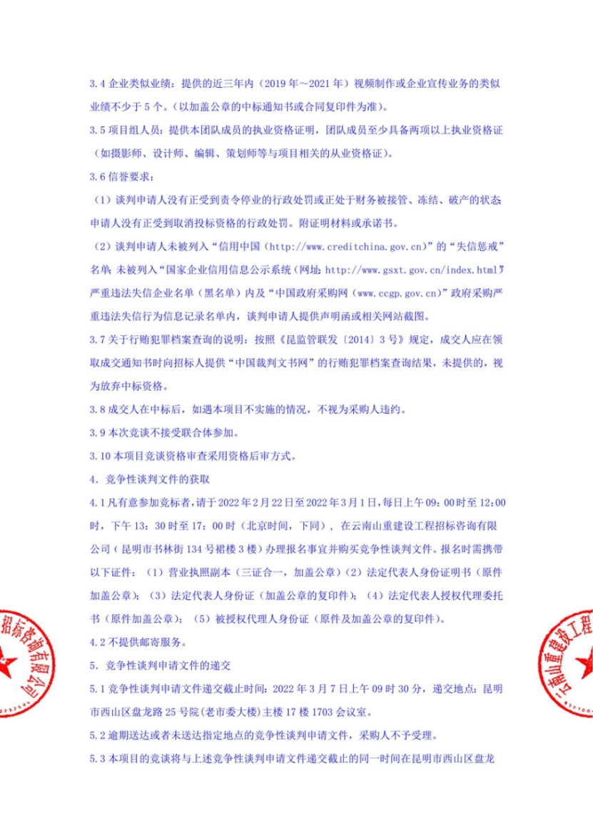 昆明市高速公路建设开发股份有限公司选聘公司宣传片拍制单位竞争性谈判公告
