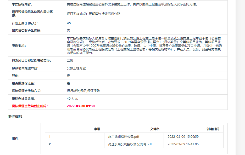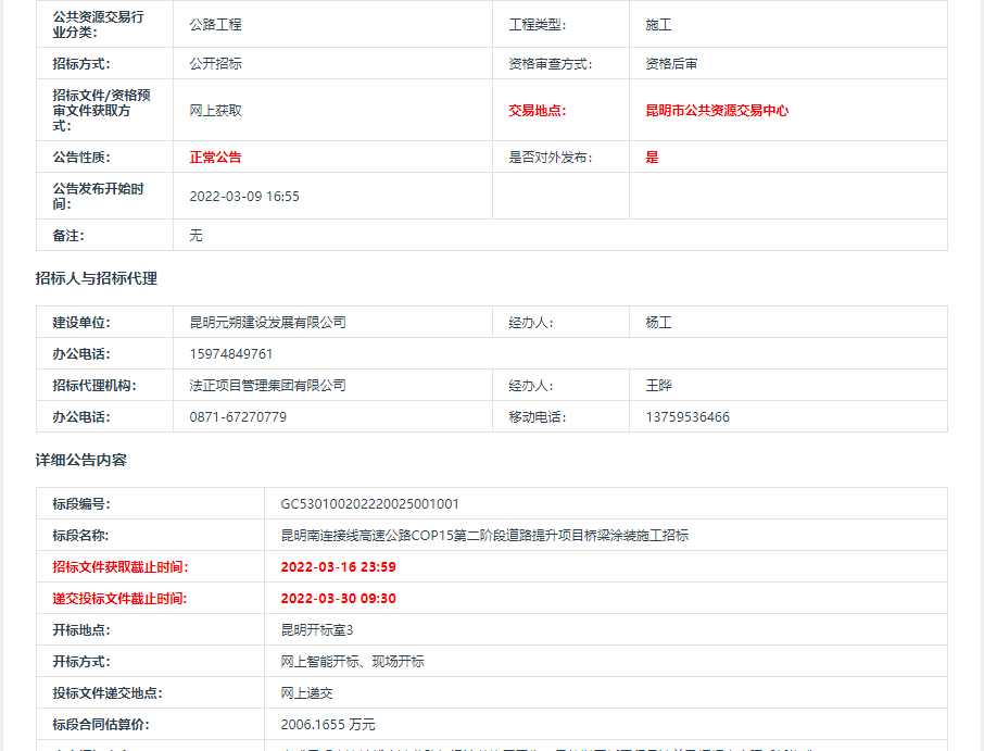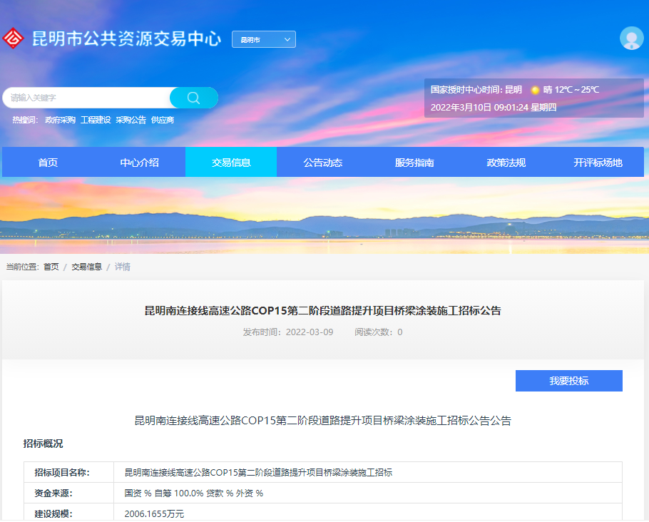 昆明南连接线高速公路COP15第二阶段道路提升项目桥梁涂装施工招标公告【中国招标投标公共服务平台,点击可查看】