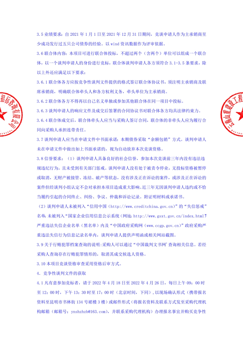 昆明市高速公路建设开发股份有限公司选聘发行公司债券中介机构(主承销商)项目竞争性谈判公告(2022年)