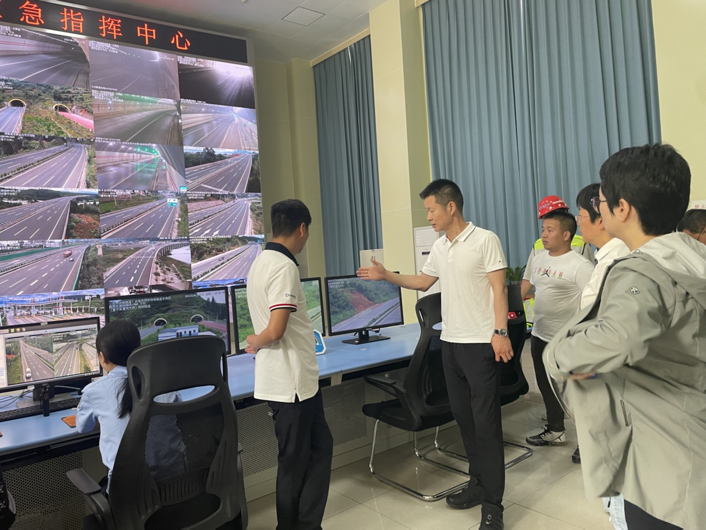 调研组现场调研北羊街服务区、宜良停车区、宜良南监控中心,听取东南绕公司5月整体生产经营、贸易业务、加油站建设、安全生产、疫情防控、汛期防控、玄武岩处置等工作情况,就工作中的难点问题进行指导。