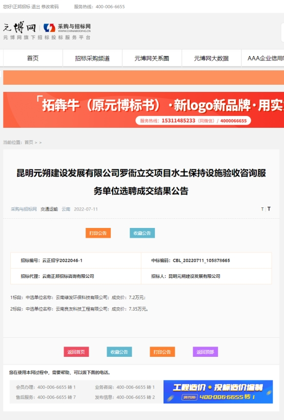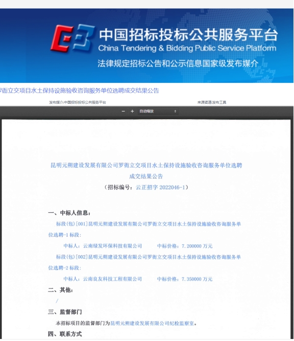 昆明元朔建设发展有限公司罗衙立交项目水土保持设施验收咨询服务单位选聘成交结果公告