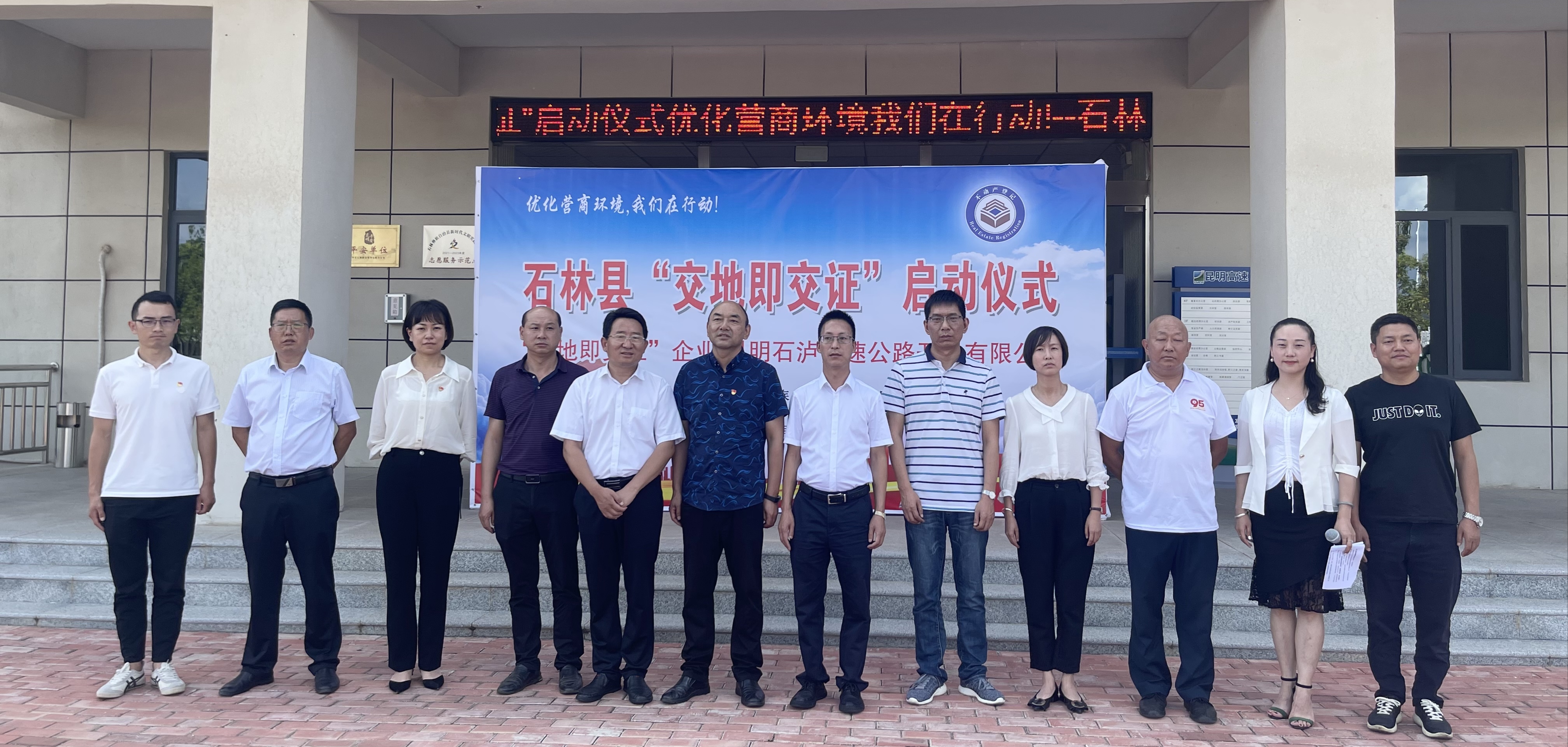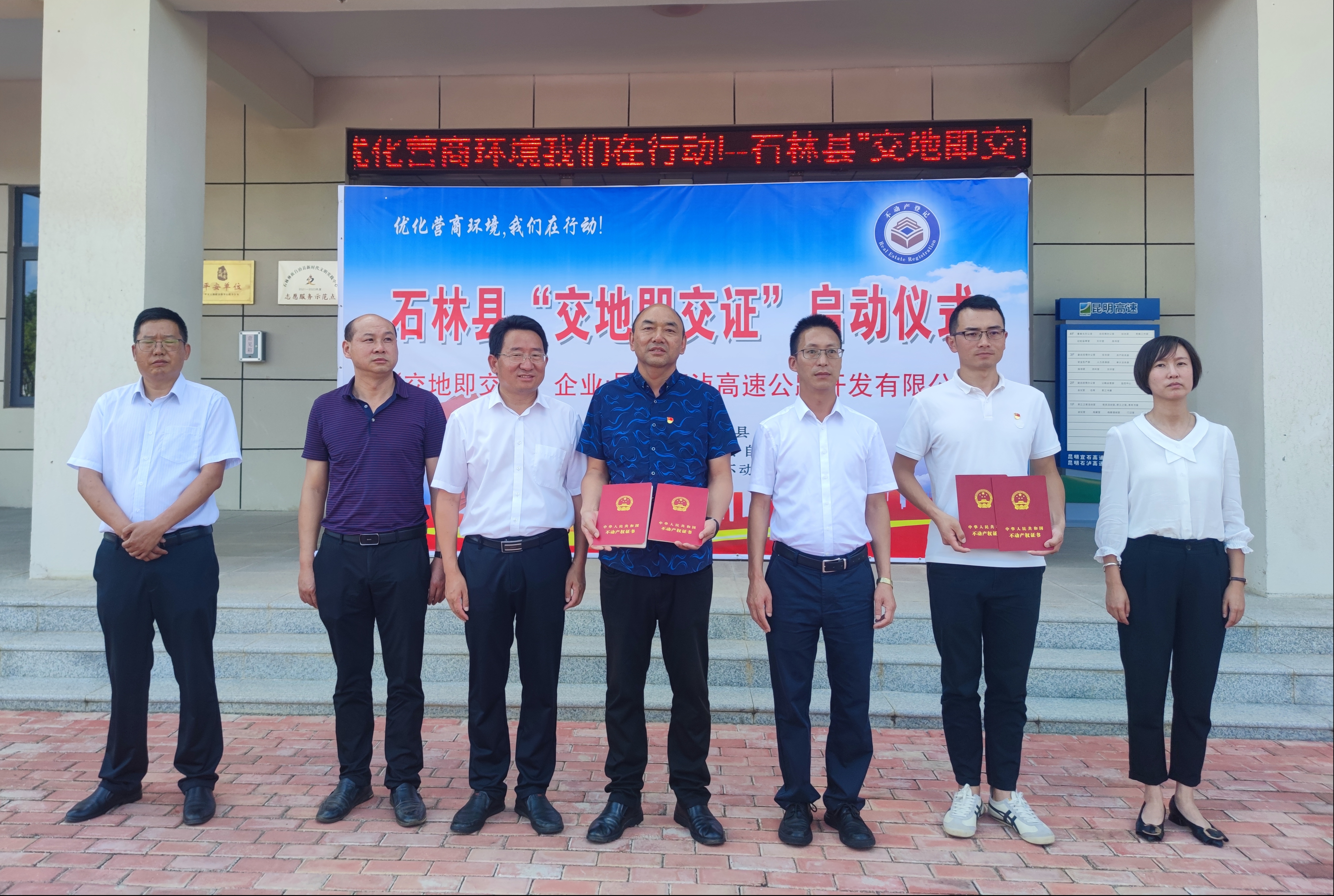 7月29日,由石林彝族自治县人民政府主办的石林县“交地即交证”启动暨现场颁证仪式在宜石高速公路公司大叠水管理中心举行,石林彝族自治县常务副县长周林春、副县长王进前,昆明市高速公路建设开发股份有限公司总工程师杨新红,县自然资源局等职能部门,宜石、石泸高速公路公司有关负责人出席仪式。