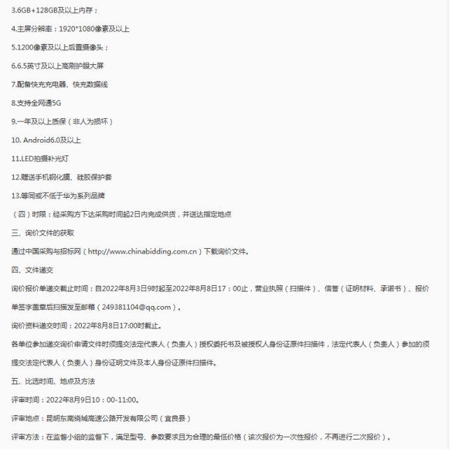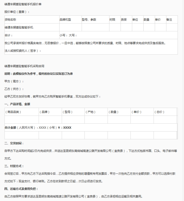 昆明东南绕城高速公路开发有限公司选聘绿通车辆查验智能手机供应商市场询价公告