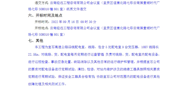 宜良至石林高速公路配电室及10kV线路2022-2024年度运维服务竞争性谈判公告