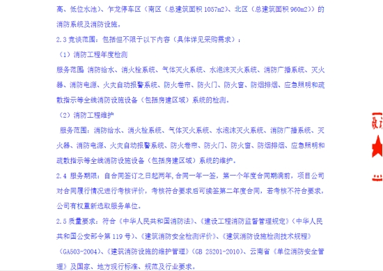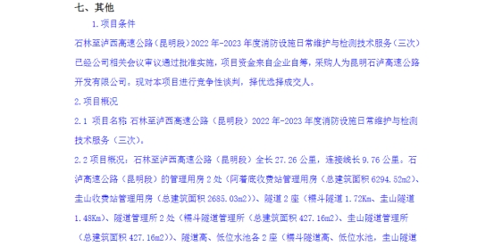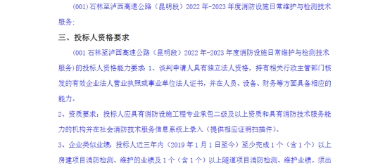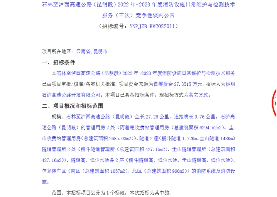 石林至泸西高速公路(昆明段)2022年-2023年度消防设施日常维护与检测技术服务(三次)竞争性谈判公告