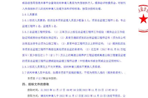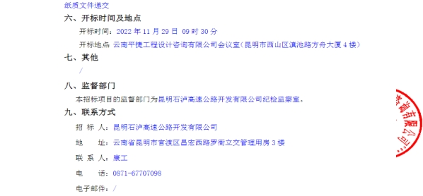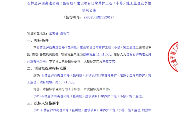 石林至泸西高速公路(昆明段)建设项目日常养护工程(小修)施工监理竞争性谈判文件公告