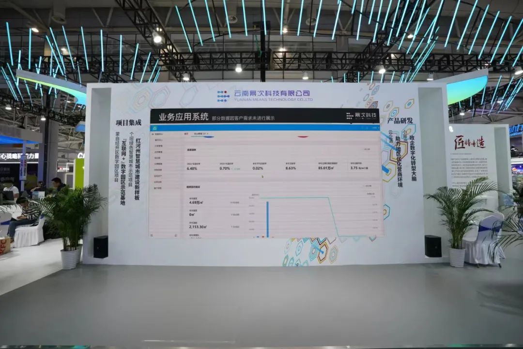 云南展位以“彩云之下有云南,云南数智有云端”为布展设计理念,按照推进数字技术与经济、政治、文化、社会、生态文明建设“五位一体”深度融合和“壮大资源经济、壮大口岸经济、壮大园区经济”进行策展构思,基于云端模块,结合“云”形式,分数字经济、数字政务、数字文化、数字社会、数字生态文明建设五大板块进行展示。