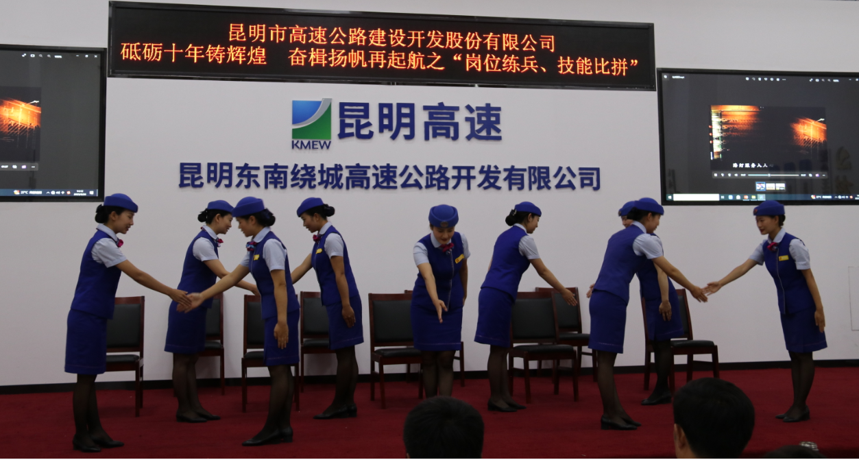 惟拼搏者不凡,惟奋斗者英勇。在文明服务礼仪展示中,参赛团队从队形、仪态、着装、站姿、坐姿、微笑服务、出入口文明服务礼仪、文明服务用语、特情处置等方面展示了昆明高速人尽责尽职、真诚热情、自信大方的职业素养和昂扬向上的精神面貌。
