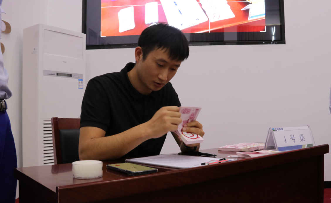 “刷刷刷”声此起彼伏,参赛选手动作飞快,用快、准、巧的点钞技艺完成拆把、点钞、扎把、记录等动作,选手们沉着应对、自信发挥,一张张点钞券在选手们灵巧的手指间滑过,翻打有序、姿态优雅、紧张激烈。