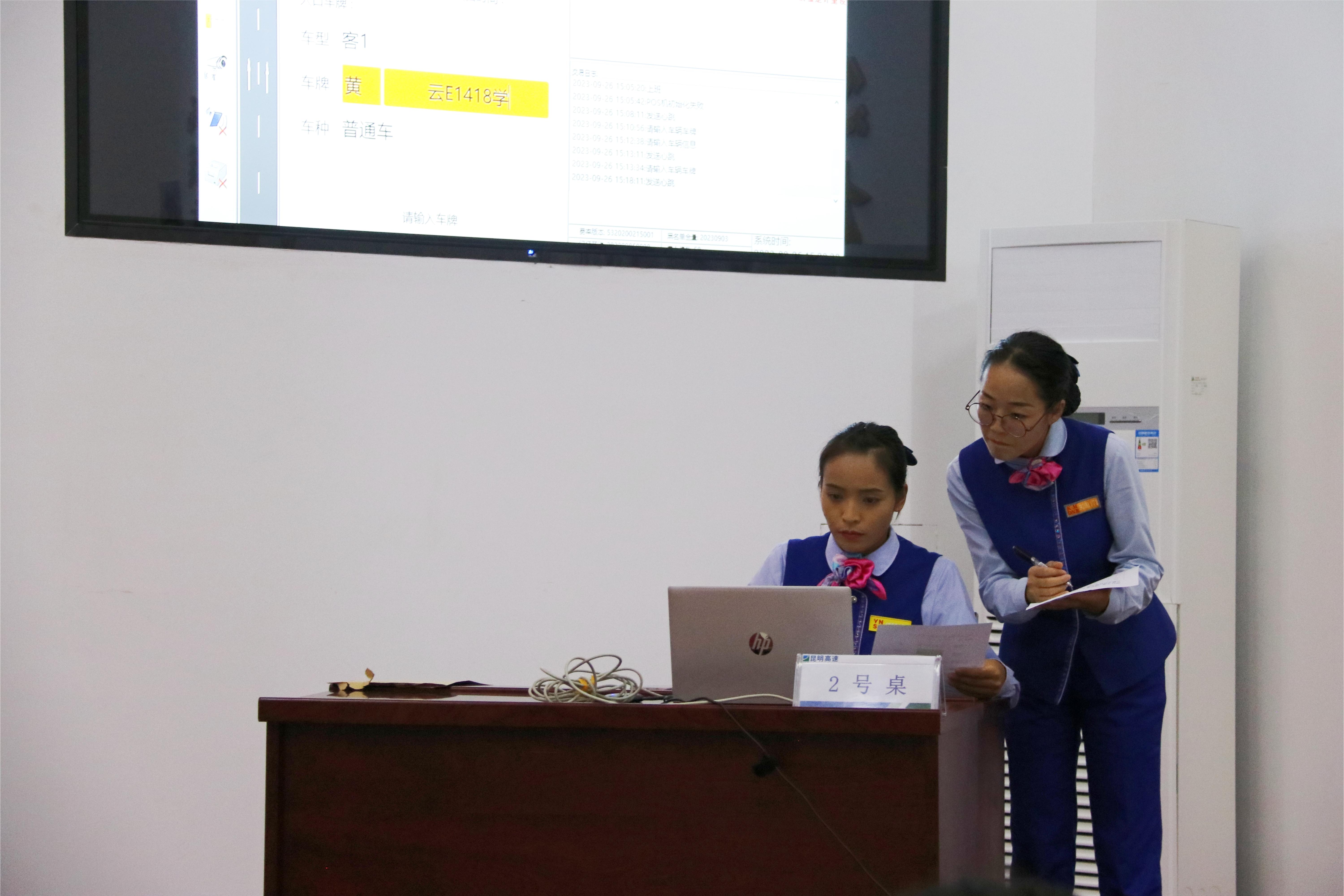 在车辆信息录入项目中,需要参赛选手在2分钟内依次将10辆车的车牌、车型、颜色等车辆号牌全牌照信息录入收费软件中,清脆地键盘声,一行行字符输入系统,操作娴熟、准确无误。